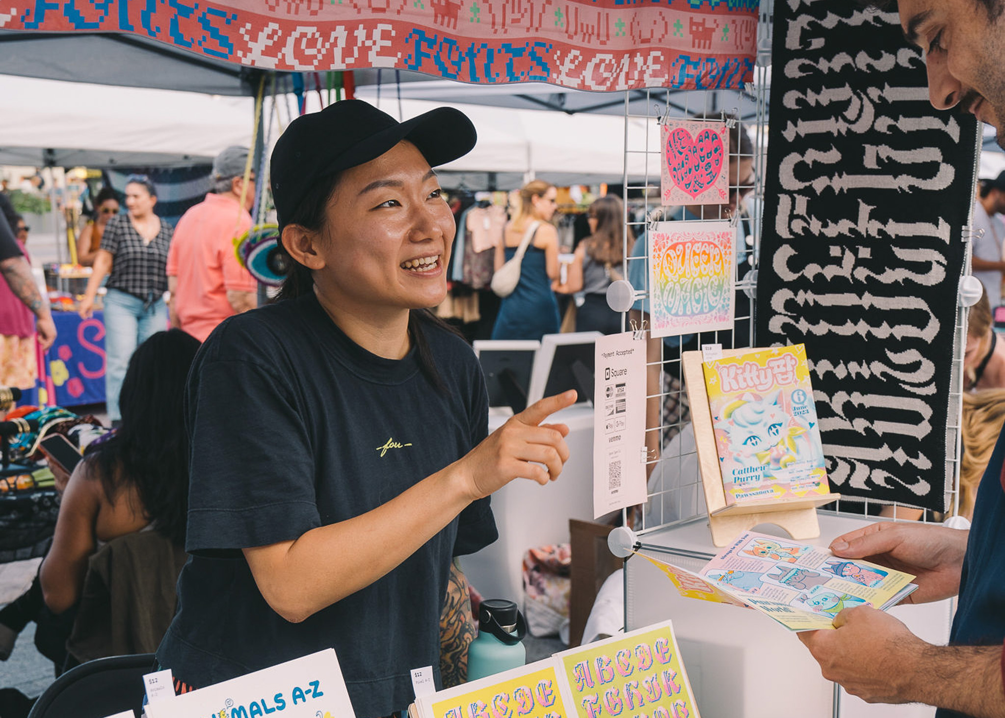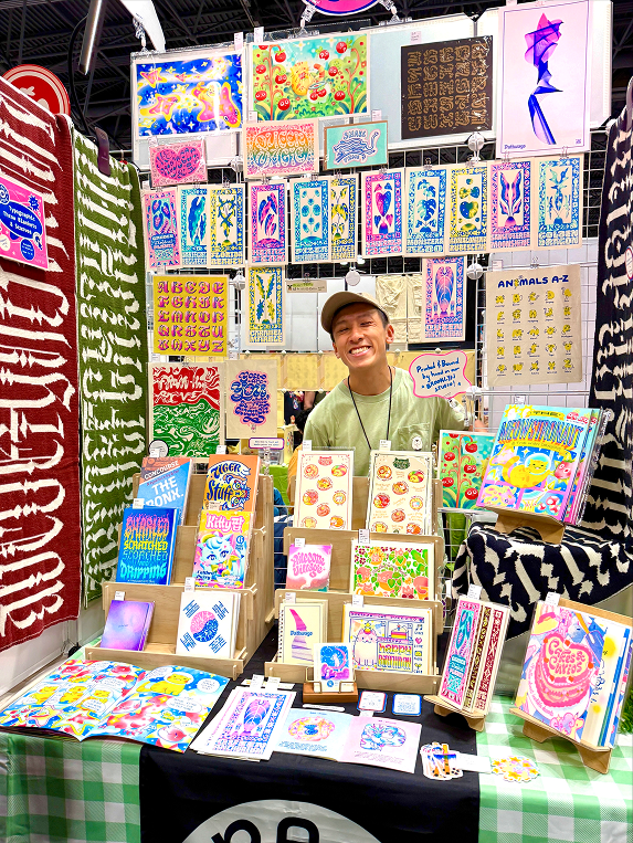Kevin Yeh (he/him) is a Burmese-American designer, developer, and educator. His work is primarily focused on computational art, pattern-based visuals, photography, and silly little doodles to hide the fact that he can't draw. He is the primary operator of the risograph press and practice, including public operations, in-person events, wholesale stocking to independent book stores, and managing the artbookfairs.com resource.