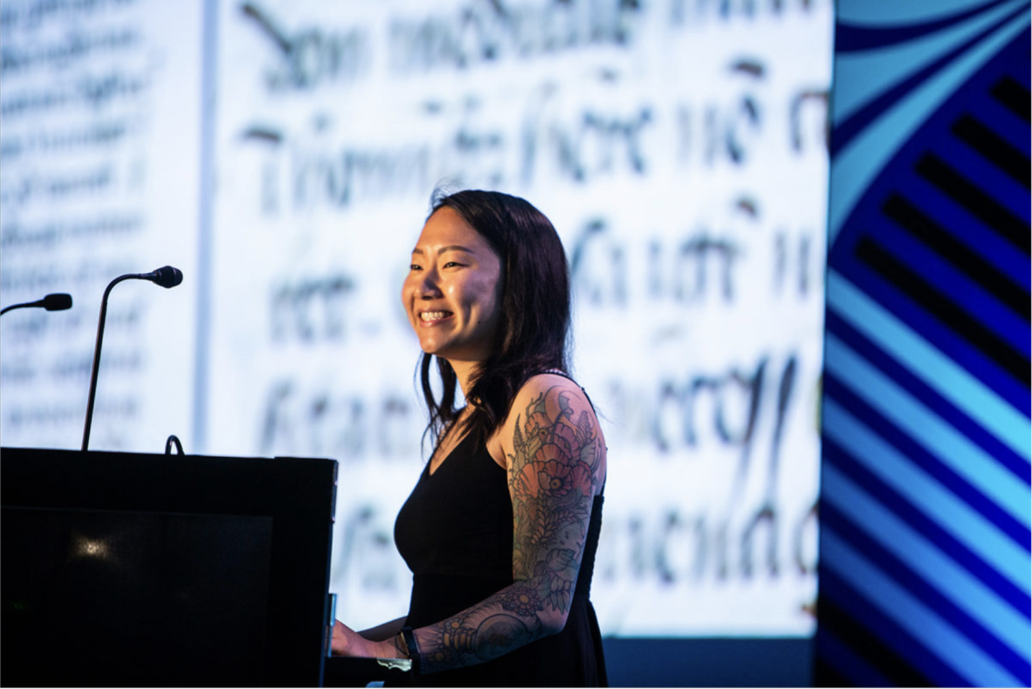 Lynne Yun (she/her) is a Korean-American typeface designer, technologist, and educator. From crafting woven calligraphic pieces to designing type for screens and publications, Lynne's work spans an evolving set of multimedia to bring a personal touch to everyday interactions. She is a co-founder of Type Electives, an alumna of the Type@Cooper Extended program, School for Poetic Computation, and ITP at NYU, and previously taught for institutions such as Type@Cooper, Parsons School of Design, and The Letterform Archive.